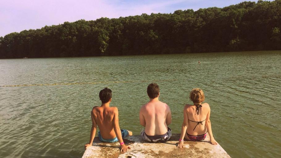 Keywords: slovakia lake sumertime water forest nature teens feet sitting summer rear view