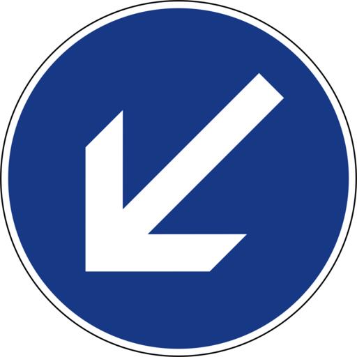 Keywords: Slovenia road sign II-47.1.svg en Keep left sl Obvezna vožnja mimo po levi strani 2014-05-13 Highway Code Government of Slovenia PD-Slovenia-exempt Diagrams of road signs of Slovenia