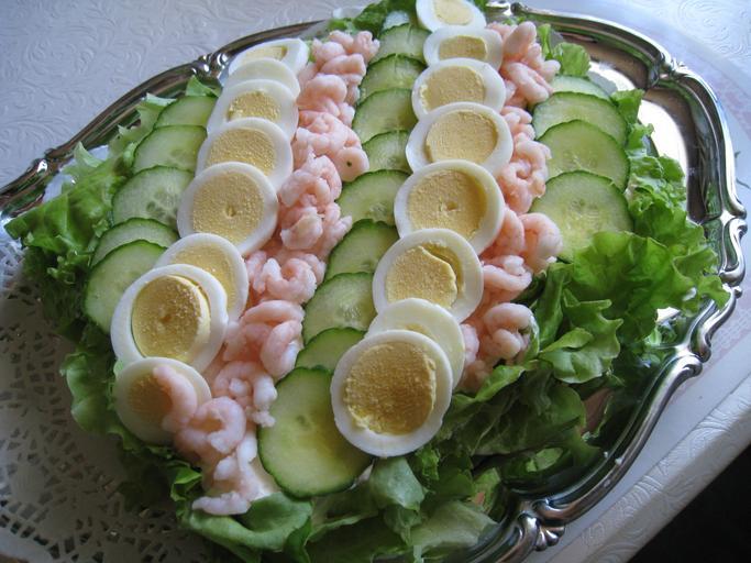 Keywords: smörgåstårta eggs salad cucumber barrel vegetables shrimp