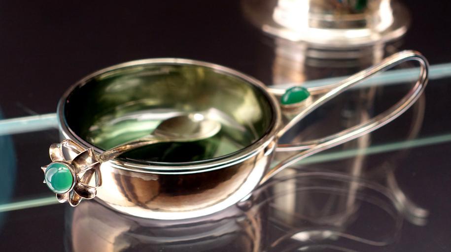 | Keywords: Small pan with spoon, designed by Charles Robert Ashbee, made by Guild of Handicraft Ltd., London, c. 1902, silver - Bröhan Museum, Berlin - DSC03937.JPG en Exhibit in the Bröhan Museum Berlin Germany This work is in the public domain because the artist died more than 70 years ago 2014-11-15 08 59 29 own Daderot other versions PD-old-70 cc-zero Metalwork in the Bröhan Museum Uploaded with UploadWizard Charles Robert Ashbee | ||||