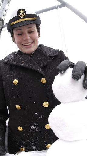 | Keywords: Small snowman.jpg Midshipman 4th Class Christa Stowe from Daytona Beach Fla makes the first snowman of her life aboard Yard Patrol Craft 698 at Coast Guard Station Philadelphia The ship and crew are one of three Yard Patrol Crafts to make the transit from the Naval Academy in Annapolis Md to Philadelphia for the 104th playing of the Army Navy game http //www news navy mil/view_single asp id 10898 Navy NewsStand 2003-12-06 Photographer's Mate 1st Class Dana Howe Public Domain First upload English Wikipedia 5 April 2004 by Minesweeper PD-USGov-Military-Navy personality rights Snowman making |