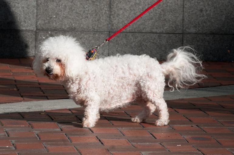 | Keywords: animal poodle dog pet furry A small white dog (poodle?) being walked on a red leash along a walkway in Market Square, adjacent to Viaduct Harbour in Auckland. A small white dog (poodle?) being walked on a red leash along a walkway in Market Square, adjacent to Viaduct Harbour in Auckland. |