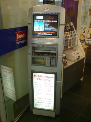 | Keywords: Smart Or Stupid, Mobile Phone Charger.jpg Not sure this will find enough business in this location to be worth the investment seen in Auckland New Zealand self-photographed 2010 Uploader Photos taken by Ingolfson 2010 in New Zealand Britomart Transport Centre Mobile phone chargers Battery chargers |