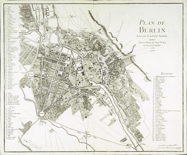 | Keywords: Smettau Plan de Berlin 1748.jpg InteractiveViewer Plan de Berlin Levé par le Général Smettau a Paris Chez le S r le Rouge Ing r Geogr phe du Roy rue des grands Augustins 1758 A P D R Format 60 6 x 50 2 cm 60 0 x 49 7 nur der Plan Maßstab 1 11 000 Orientierung Nord sw Kupferstich Verkleinerte Kopie von Schmettaus Plan von 1748 The Ryhiner Map Collection - Universitätsbibliothek Bern http //aleph unibas ch/F/ local_base DSV01 con_lng GER func find-b find_code SYS request 001221512 online 1738 Samuel Graf von Schmettau PD-old-100-1923 1748 in Berlin Old maps of Berlin 1748 Samuel von Schmettau |