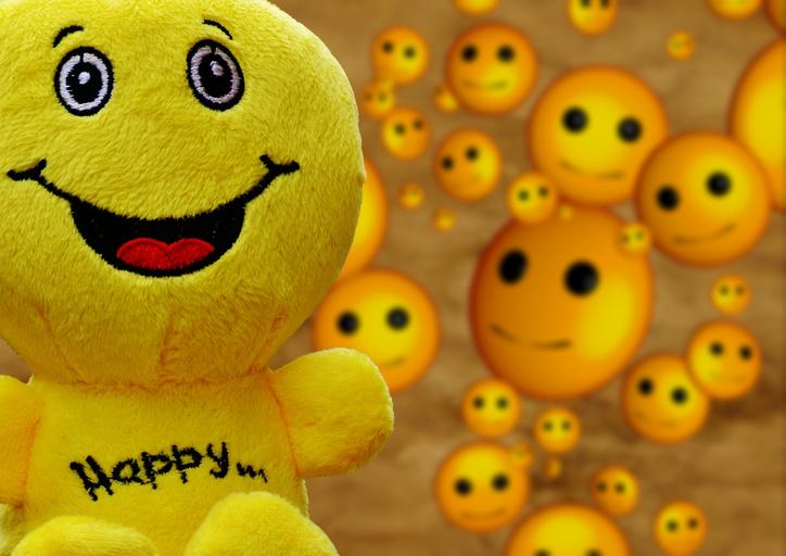 Keywords: smiley laugh funny emoticon emotion yellow green cheerful joy cute sweet good mood smile day start beginning positive courage life is beautiful happy happiness joy of life laughing face frohnatur pep talk keep smiling plush love valentine's day