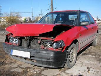 Keywords: Smiling Mazda in Gdańsk.JPG en A Mazda 323 that keeps smiling in Gdańsk Poland own Artur Andrzej 2011-03-07 Cc-zero Disasters and accidents in Gdańsk Automobiles in Gdańsk Mazda 323 BG Road accidents in Poland Red vehicles in Poland