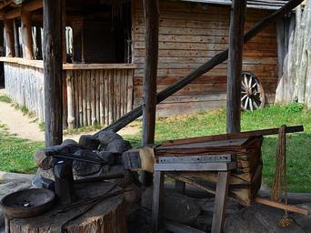 Keywords: smithy anvil medieval smithy blacksmith tools hearth bellows