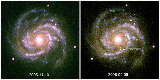 | Keywords: SN2006X.jpg en Spiral Galaxy M100 before and after the appearance of supernova en SN 2006X Taken from en NASA website http //heasarc gsfc nasa gov/docs/swift/results/releases/images/SN2006X/ en wikipedia 2006-02-17 Livajo wikipedia en PD-USGov original upload log page en wikipedia SN2006X jpg 2006-02-17 02 42 Livajo 799×399×8 457777 bytes <nowiki>Spiral Galaxy M100 before and after the appearance of supernova SN2006X Taken from NASA website http //heasarc gsfc nasa gov/docs/swift/results/releases/images/SN2006X/</nowiki> Messier 100 SN 2006X Before and after |