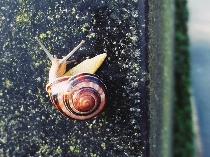 Keywords: snail shell hide away close nature snail shell mollusk spiral animal slowly creature housing stone brown