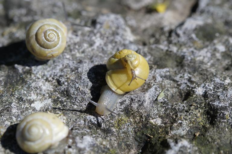 | Keywords: snails crawl steinig yellow shell slowly mollusk nature close reptile animal probe gastropoda summer housing snail fauna copse snail one above the other each other mother mother and child child mother with child two for two bear family snail family |