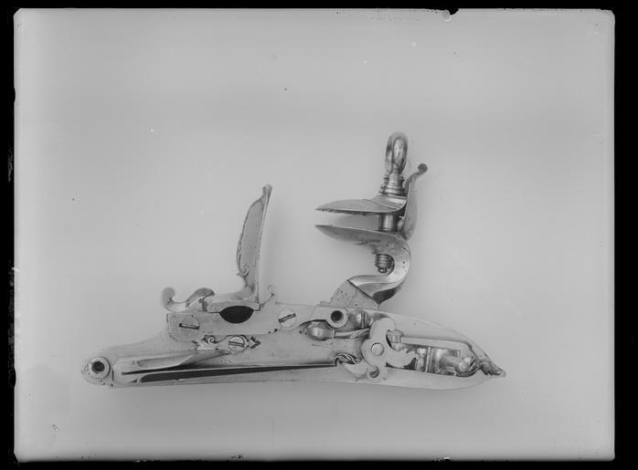 Keywords: Snapplåsbössa med lås alla moda Vicenzo Mariano, Fabrica Reale, Neapel ca 1770 - Livrustkammaren - 34936.tif Sextonsidig damaskerad delvis blånerad slätborrad pipa med åttsidigt kammarstycke vid övergången dekor av påslaget guld På kammaren guldstämplar FABR // DI // NAP Stöckel nr 815 krönt namnchiffer FR Stöckel 810 guldblecket borta mitt över stämpeln därframför ornamentsstämplar tre liljor djupa stämplar devotionskors samt tre blommor grunda På vardera av de anslutande faserna tre grunda blomstämplar två djupa liljestämplar en grund liljestämpel en djup liljestämpel och tre grunda blomstämplar Guldfodrat fänghål På pipans undersida och svansskruven 2+2 B-liknande stämplar På svansskruvbladet graverade rankor och trofégrupp med hästhuvud <br/>Riktmedel Från sidan inlaxat stolpkorn av förgylld mässing omgivet av åtta ornamentsstämplar liljor <br/>Fästning Pipan fäst med krysskruv samt ett engelskt pipstift En rörka fastlödd på pipans undersida <br/><br/>Snapplås alla moda plant låsbleck med fasade kanter försänkt bakspets svängd fasad kant Krönt guldstämpel framför hanen F R // DI // NAP Stöckel nr 816 därframför graverat MARIANO Dekor i stålsnitt och gravyr bakom hanen en akantusranka Platt hane med fasade kanter dekor i stålsnitt och gravyr på hanhals samt vid hel- och halvspännshak Ovala käkar käkskruv med ringformigt huvud <br/>Fästning Två låsskruvar <br/><br/>Halvstock av valnöt kolvlängd 300 mm Runt beslagen snidad dekor framför låsbleck och sidbleck runt svansskruvblad och tumplåt dessutom inläggningar av silvertråd Beslag av stål slät bakplåt hälen upptill avslutad av lilja Tumplåt i form av oval sköld som hänger i rosett graverat vapen för hertigdömet Parma under huset Bourbon 1731-1814 Konturerat platt sidbleck med fasade kanter slätt näsband På kolvryggen dyna klädd med grön sammet kantad med silvergalon Varbygel med graverad signatur MARIANO fasade bakre och främre armar avslutade av tre liljor <br/><br/>Tillbehör <br/>Laddstock av ljusare trä 1 921mm något konisk hornskoning l 36 mm mellan skoning och stock en smal ring av stål Laddstocken instucken i sluten not genom näsbandet original caption Gustav III s italienska resa ca 1770 steel e127 - eldvapen - pipa lås och stockbeslag material stål - walnut e3 - eldvapen - stock material valnöt - silver thread e8 - eldvapen - stockdekor material silvertråd - velvet Färg grön e7 - eldvapen - stockbeslag material sammet size mm 1301 size mm 942 pipa size mm 195 size mm 1 gods mynning g 2300 LRK Gustav III av Sverige FABR //DI//NAP Vicenzo Mariano F R namnchiffer krönt Ferdinand IV av Neapel place of origin Neapel original filename LN_B04034_006914 39502 inventory number LRK 2892 34936 CC0 Snapplåsbössa med lås alla moda Vicenzo Mariano Fabrica Reale Neapel ca 1770 - Livrustkammaren - 34936-negative tif Flintlock muskets images from Livrustkammaren Media contributed by LSH unmatched event Media contributed by LSH unmatched material Media contributed by LSH unmatched creator Media contributed by LSH dim-with multiple size templates Media contributed by LSH 2013-10 |