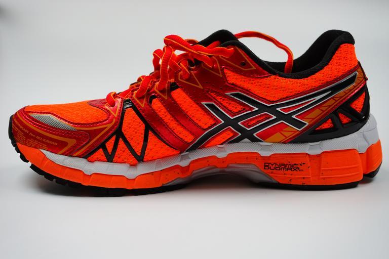 Keywords: sneaker running shoe shoe sport shoe run jog sport race shoelaces jogging joggingschuh lacing orange red gaudy knallbunt bright orange striking neon colors neonorange kayano