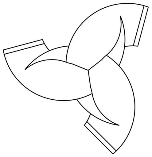 | Keywords: Snoldelev-three-interlaced-horns.svg A redrawn and slightly schematized version of a symbol found on the Snoldelev Stone Three horns are interlaced in a pattern with 3-fold rotational symmetry similar to incomplete Borromean rings See Image Three-Crescents-Diane-Poitiers png for discussion of other symbols with a similar pattern of interlacing Own -- SVG version of Image Snoldelev-three-interlaced-horns png Converted from the following PostScript code <pre> 1 75 setlinewidth 300 396 translate -60 rotate /horn 60 -75 92 translate 0 0 150 154 353 202 5 arc -40 503 -37 894 100 191 25 129 71 arcn stroke -40 503 -37 894 100 41 175 22 5 arcn 0 0 150 10 117 71 arc stroke 1 setlinejoin -40 503 -37 894 100 69 738 78 738 arc -60 75 92 lineto stroke 0 setlinejoin /c 1 02637 def 47 078 10 374 moveto 95 836 c mul 25 673 c mul rlineto stroke def gsave horn grestore gsave 120 rotate horn grestore gsave 240 rotate horn grestore showpage EOF</pre> 2006-09-02 AnonMoos v fl Heathen symbols Incomplete Borromean rings interlacings Images with PostScript source code 3-fold rotational symmetry |