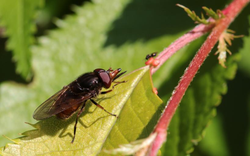 Keywords: snouts-schwebfliege rhingia campestris insect fly big eyes wing nature leaf