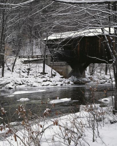 Keywords: snow covered bridge landscape scenic stream creek wood rural trees winter cold wooden frozen architecture wintry icy country road countryside weather season white structure