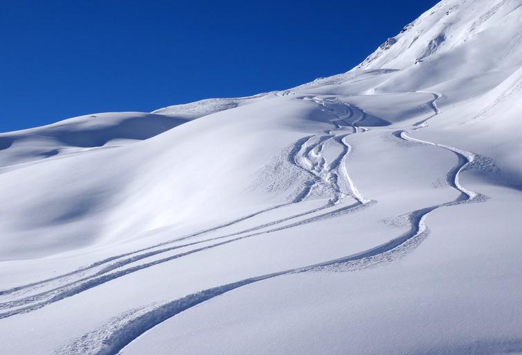 Keywords: snow landscape ski nature cold blue sky winter white footprints
