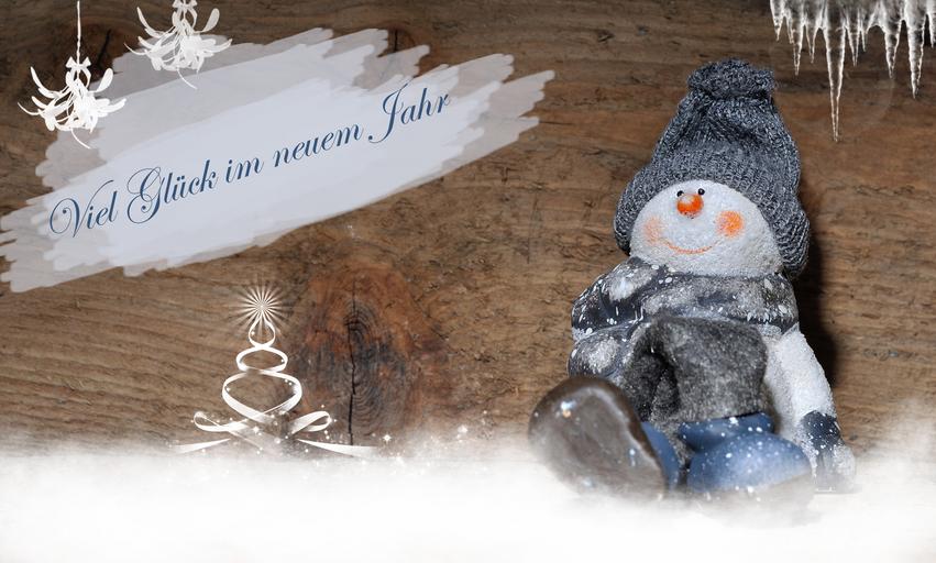 Keywords: snow man new year's day congratulations greeting card postcard wood