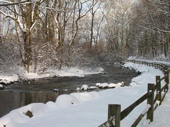 Keywords: snow trees water stream woods fence countryside scenic nature pennsylvania snowy