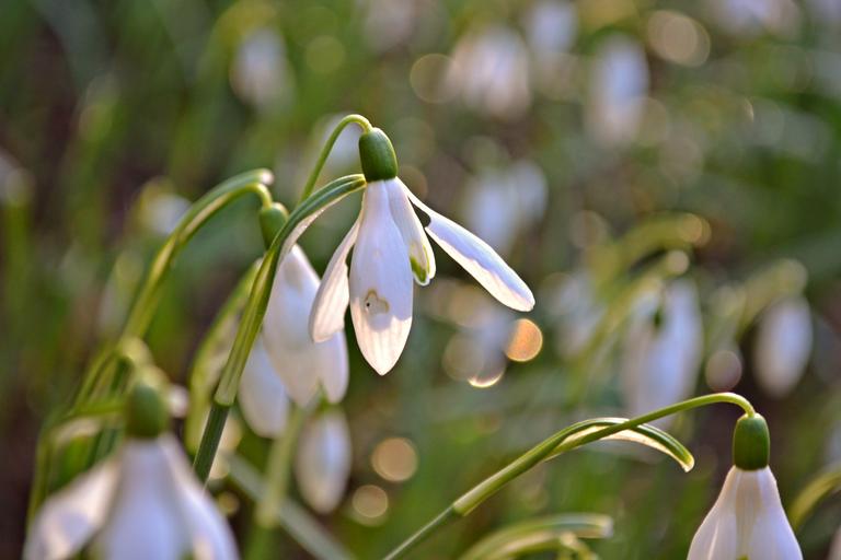 Keywords: snowdrops flowers nature white flowers green winter petals bokeh close up spring garden snowdrop