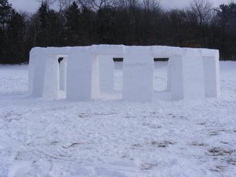 Keywords: Snowhenge3.JPG en A 1/3rd scale replica of Stonehenge at the MacKay Jaycees Family Park in Grand Rapids Michigan The monument built out of Michigan's most abundant natural raw material is appropriately named Snowhenge Standing 6 5 feet tall and 30 feet in diameter and consisting of nearly 1000 cubic feet of packed snow Snowhenge's 12 pillars and 12 lintels are perfectly aligned astronomical markers Looking directly through the hole in the center of pillar 3 soon after sunset on Winter Solstice extraordinarily reveals an almost equilateral triangle formed by the visible planets Saturn left Mars top and Venus right A curious carving on pillar 4 shows four stars inside a trapezium which matches the Trapezium Star Cluster in the Orion Nebula The imaginary end point of a line dissecting the trapezium matches the coordinates of the star Sirius the brightest star in the Milky Way An obelisk inside the snow circle marks the passage of the sun as its shadow moves in a figure eight on the ground below Stone plaques strategically placed on the ground display the constellations of the zodiac Outside the circle three pairs of standing snowmen show where the sun rises and sets for each of the solstices and equinoxes Every key point also has a rock plaque denoting its seasonal significance engraved with a simple phrase like Midsummer Solstice Sunrise Others describe local area seasonal events such as Blandford Sugarbush Grand Rapids Festival of the Arts 28th Street Metro Cruise and Celebration on the Grand The 12 lintels supported by 144 rods of ice rebar also contain markings that coincide with the orbital patterns of Earth and Venus which are designed to forecast solar eclipses the appearance of comets and the end of the world on December 23rd of 2012 exactly matching the Mayan calendar prediction What's most truly remarkable pillar 1 is precisely parallel with 28th Street Curiously the phenomenon known as global warming which has created isolated heat zones around the globe inversely causes cold spots on the opposite side of the globe Numerous consecutive years of record heat spikes in Perth Australia are directly responsible for the extraordinary cold snaps at MacKay Jaycees Family Park which will amazingly keep Snowhenge frozen all year round http //snowhenge blogspot com Stonehenge Mystery Solved at Snowhenge - Michigan DRUIDS Unravel the Ancient Enigma own MichiganArchaeologist 2010-02-13 Replicas of Stonehenge Parks in Michigan Snow in the United States |