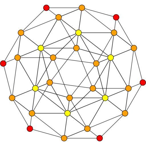 Keywords: Snub 24-cell D4.svg en en Snub 24-cell graph D4 Coxeter plane red orange yellow vertices have multiplicities of 1 3 6 own Tomruen Snub 24-cell Set of colored Coxeter plane graphs; 30 vertices