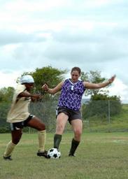 | Keywords: Soccer Game DVIDS106115.jpg en Spc Megan Phillips broadcast journalist from the 112th Mobile Public Affairs Detachment Wisconsin Army National Guard working for Joint Task Force Guantanamo Public Affairs chases the ball while playing soccer with civilian contractors July 26 2008 All games are part of a fundraiser to help raise money for the upcoming Jamaican Independence celebration held on U S Naval Station Guantanamo Bay Cuba Joint Task Force Guantanamo conducts safe and humane care and custody of detained enemy combatants The JTF conducts interrogation operations to collect strategic intelligence in support of the Global War on Terror and supports law enforcement and war crimes investigations JTF Guantanamo is committed to the safety and security of American service members and civilians working inside its detention facilities 2008-07-26 Petty Officer 3rd Class Kleynia McKnight https //www dvidshub net/image/106115 080726-N-+++++-007 2008-07-29 17 33 GUANTANAMO BAY CU PD-USGov-Military-Navy Naval Station Guantanamo Bay Joint Task Force Guantanamo Wisconsin Army National Guard Images from DoD uploaded by Fæ |