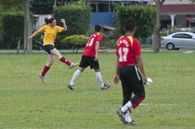 | Keywords: Soccer match 120926-N-MU720-224.jpg en Ensign Carmen Houk assigned to guided-missile destroyer USS Mustin DDG 89 shoots on goal during a friendly soccer match against members of the Royal Malaysian Navy RMN at the Bandamaran Sports Center during Mustin ™s port visit to Malaysia While in port Mustin Sailors will engage with members of the RMN and be afforded the opportunity to experience the sights and sounds of Malaysia ™s capital city Kuala Lumpur and tours of the surrounding area provided by the Mustin ™s Morale Welfare and Recreation MWR department U S Navy photo by Mass Communication Specialist 2nd Class Devon Dow/Released 2012-09-26 Petty Officer 2nd Class Devon Dow https //www dvidshub net/image/1692518 120926-N-MU720-224 2014-12-09 16 02 KLANG MY PD-USGov-Military-Navy USS Mustin DDG-89 Images from DoD uploaded by Fæ |