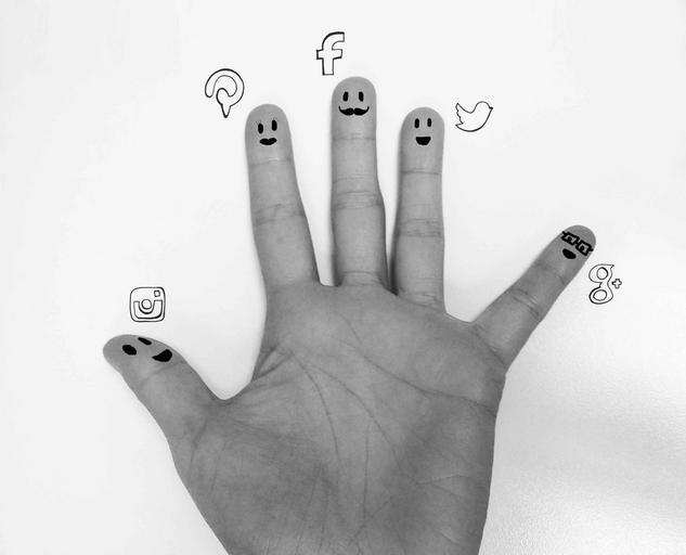 Keywords: social hand fingers finger palm five social media marketing smilies facebook twitter social networks google plus instagram pinterest