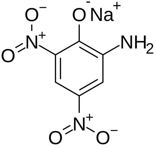 Keywords: Sodium picramate.svg Chemical structure of sodium picramate Own 21 25 12 February 2016 UTC Ed Edgar181 Sodium picramate