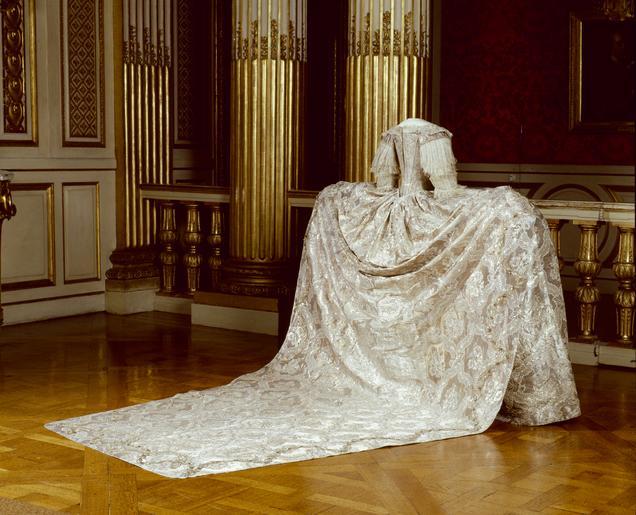 | Keywords: Sofia Magdalenas bilägersdräkt - Livrustkammaren - 55918.tif LSH artwork Johan Adam Ströwer livskräddare sv Tyget till bröllopsklänningen är troligen beställt från Frankrike Bröllopsklänningen är en sk robe de cour sydd efter rådande franskt mode Den ingick i Sofia Magdalenas trousseau och den lämnades in till Klädkammaren 1766 <br/>Dräktens ursprung har länge varit okänt men man har kunnat finna avgörande dokmument för att fastställa att dräkten är sydd i Köpenhamn av prinsessans danska hovskräddare Johan Adam Ströwer med tyg inköpt i Hamburg <br/>Smalt styvat liv med smal betonad midja Av silverbrokad med ett mönster i silver och vitt föreställande små girlander blommor och blad Livet har en utdragen spets mitt fram på sidorna runtom är skuret tolv små rundade flikar 70 mm höga bildandes ett skört Ovanför skörten löper ett silversnöre <br/>Klänningen har en rund vid ringning kantad av vit spets 50 mm bred av silkestyll som sammandragits med några stygn mitt fram <br/>Livet har ca 37 mm breda axelpartier kantade av en 10 mm bred silverspets av silvertråd och smala silverlan Ärmarna är löstagbara av flera lager av en tunn mönstrad gasväv kallade engageantes <br/>Sidsömmarna täcks av en 15 mm bred spets av silvertråd och smala silverlan <br/>Livet snöras ihop mitt bak av 13 snörhål på vardera sida Silvertyget har vikts upp på vardera sida om knäppningen som bredast upptill 80 mm <br/>Livet är på insidan fodrat med vit sidenrips sytt i smala kanaler för styvnaderna av valben Vid ringningen är silvertyget omvikt så att det bildar en 10 mm bred fåll på insidan original caption Sofia Magdalenas bilägersdräkt - LRK 25915 Gustav III och Sofia Magdalenas bröllop 1766 brocade Färg silver d1 - dräkt - yttermaterial material silverbrokad - tulle Färg vit dekor material tyll - silk Färg vit d2 - dräkt - foder material sidenrips - silver Färg silver dekor material silverlan size mm 365 mitt fram size mm 615 bröst LRK Sofia Magdalena av Sverige Brudklänningar 1986-1987 Fest och fritid vid hovet 2003 Dronningens Kjole 2004 Det elegante liv arb namn 2007 Bröllop för kung och fosterland 2010-2011 Livrustkammaren Gustav III place of origin Köpenhamn original filename lm_t03903 62593 inventory number LRK 25915 55918 CC-BY-SA <gallery caption Different images of same object > File Sofia Magdalenas bröllopsklänning - Livrustkammaren - 82363 tif File Liv insidan Brudklänning - Livrustkammaren - 39563 tif File Sofia Magdalenas bröllopsklänning Bild bakifrån med fullständigt släp - Livrustkammaren - 13878 tif File Sofia Magdalenas bröllopsklänning liv - Livrustkammaren - 22441 tif File Sofia Magdalenas bröllopsklänning liv - Livrustkammaren - 5317 tif File Bröllopsklänning Sofia Magdalena - Livrustkammaren - 39562 tif File Sofia Magdalenas bröllopsklänning bakifrån - Livrustkammaren - 73804 tif File Detalj Sofia Magdalenas bilägersdräkt - Livrustkammaren - 81600 tif </gallery> Court dress of Sweden Media contributed by LSH dim-with multiple size templates Media contributed by LSH unmatched creator Wedding dress of Sofia Magdalena of Denmark Media contributed by LSH 2014-11 |