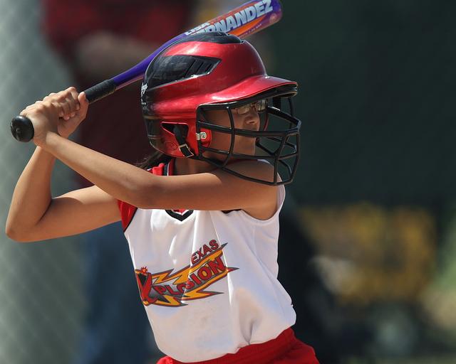 Keywords: softball batter female hitter focus concentration game competition bat helmet uniform player competitive playing watching athlete home sport play action girl