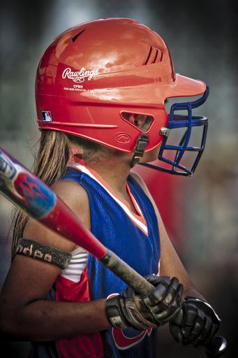 Keywords: softball girls game athlete sport female player play bat competition athletic batter young youth fastpitch glove helmet anticipation focus anticipating headwear prepared