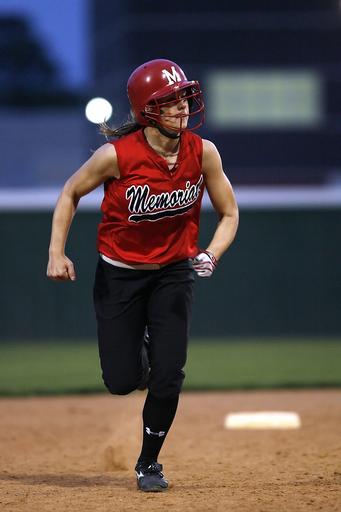 Keywords: softball girls runner helmet athlete game sport female player field play competition athletic teenager base base path running competitive action high school focus
