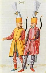 | Keywords: Solaks.png  en Two members of the select Solaks guard Janissary archers of the Ottoman Sultans 2011-06-15 Γεννάδειος Βιβλιοθήκη Ιστορία του ελληνικού έθνους - Τόμος Ι' - Ο ελληνισμός υ ό ξένη κυριαρχία  ερίοδος 1453-1669 σελ 35 Unknown early 16th-century artist PD-Art Uploaded with UploadWizard Janissaries Guards of heads of state Archers in art |