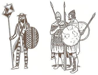 | Keywords: Soldiers of Xerxes army.png s archaeological findings and images on greek vases From left to right Persian flag-bearer Armenian soldier Cappadocian soldier Ксе кса Реконст укция по описанию Ге одота а хеологическим находкам и исункам на г еческих вазах Слева нап аво пе сидский штанда тоносец а мянский и каппадокийский воины Scanned from book Всеми ная исто ия в четы ёх томах Д евний ми Сочинение п офессо а Оска а Еге а 1910 Издательство «Специальная лите ату а» Санкт-Пете бу г 1997 isbn 5-87685-085-3 т 1 ти аж 10000 824 ст Reprint of 1904 year edition by А Ф а кс 1904 scan by ru user Кучумов Анд ей first publication before 1904 PD-old Achaemenids warriors Standard-bearers in art Xerxes I Armenians in art Cappadocia Drawings of soldiers |