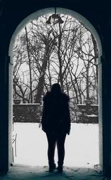 Keywords: columbus stock solitude lonely snow empty dark white light contrast trees Photograph of a woman looking out into the snow Photograph of a woman looking out into the snow