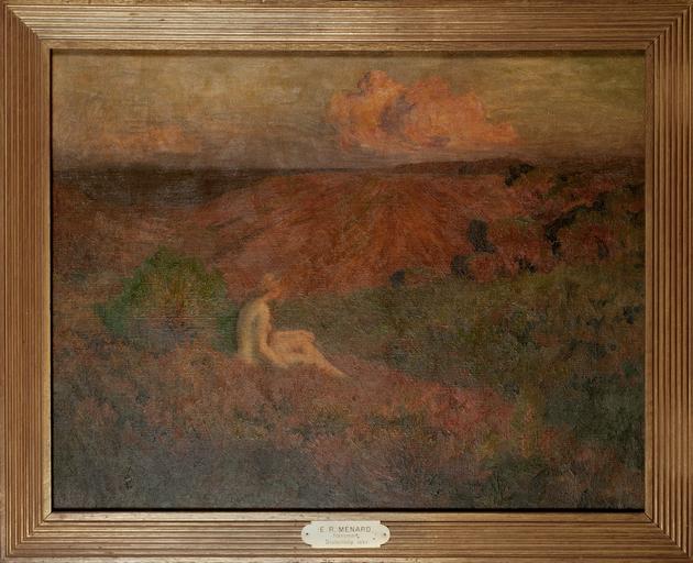 | Keywords: Solitude (Émile René Ménard) - Nationalmuseum - 18521.tif Artwork Creator Émile-René Ménard Solitude This landscape with its misty twilight is typical of René Ménard and of Symbolism a movement that began to emerge in the 1880s and 1890s The painting was shown at the Stockholm Exhibition in 1897 which also featured works by Impressionist artists such as Claude Monet But it was Ménard ™s painting that was bought by the Nationalmuseum The suggestion of buying the work for the museum came from the painter Georg von Rosen The melancholic mood conveyed by Ménard ™s landscapes is also definitely related to that of Swedish painting at the turn of the 19th century Det här landskapet med sitt disiga kvällsljus är typiskt för René Ménard och för den symbolistiska strömning som växte fram pÃ¥ 1880- och 1890-talen MÃ¥lningen fanns med pÃ¥ Stockholmsutställningen 1897 Samtidigt visades där verk av impressionister som Claude Monet Men det var Ménards mÃ¥lning som köptes av Nationalmuseum Förslaget att införskaffa verket till museet kom frÃ¥n mÃ¥laren Georg von Rosen Den melankoliska stämning som Ménards landskap förmedlar har ocksÃ¥ ett tydligt släktskap med det svenska sekelskiftesmÃ¥leriet header This landscape with its misty twilight is typical of René Ménard and of Symbolism a movement that began to emerge in the 1880s and 1890s The painting was shown at the Stockholm Exhibition in 1897 which also featured works by Impressionist artists such as Claude Monet But it was Ménard ™s painting that was bought by the Nationalmuseum The suggestion of buying the work for the museum came from the painter Georg von Rosen The melancholic mood conveyed by Ménard ™s landscapes is also definitely related to that of Swedish painting at the turn of the 19th century Det här landskapet med sitt disiga kvällsljus är typiskt för René Ménard och för den symbolistiska strömning som växte fram pÃ¥ 1880- och 1890-talen MÃ¥lningen fanns med pÃ¥ Stockholmsutställningen 1897 Samtidigt visades där verk av impressionister som Claude Monet Men det var Ménards mÃ¥lning som köptes av Nationalmuseum Förslaget att införskaffa verket till museet kom frÃ¥n mÃ¥laren Georg von Rosen Den melankoliska stämning som Ménards landskap förmedlar har ocksÃ¥ ett tydligt släktskap med det svenska sekelskiftesmÃ¥leriet date Oil on canvas Olja pÃ¥ duk Size cm 81 66 Framed Size cm 93 77 4 Institution Nationalmuseum Stockholm Signerad E R Ménard accession number 18521 NM 1518 place of creation Linn Ahlgren / Nationalmuseum Nationalmuseum Stockholm cooperation project Licensed-PD-Art PD-old-auto PD-Nationalmuseum_Stockholm 1930 Media contributed by Nationalmuseum Stockholm 2016-10 Paintings in the Nationalmuseum Stockholm Émile-René Ménard |