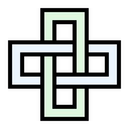 Keywords: Solomons-knot-square.svg Simple squared depiction of the decorative Solomon's knot or L4a1 link of mathematical knot theory For another version see File Solomons-knot-ornamental svg Self-made graphic converted from the following vector PostScript source code <pre> 36 setlinewidth 92 96 1 setrgbcolor/X 2 5 add 144 mul exch repeat def/l X lineto def/A closepath gsave 72 setlinewidth 0 setgray stroke grestore stroke def 0 1 X moveto 3 1 l 3 2 l 0 2 l A 87 97 87 setrgbcolor 1 0 X moveto 1 3 l 2 3 l 2 0 l A/r 120 mul exch 120 mul exch rlineto def 72 setlinewidth 0 setgray 1 5 1 X moveto 1 0 r stroke 5 2 X moveto 1 0 r stroke 92 96 1 setrgbcolor 36 setlinewidth 1 48 1 X moveto 1 04 0 r stroke 48 2 X moveto 1 04 0 r stroke stroke showpage EOF</pre> 2010 AnonMoos v fl Knots and links on transparent background Solomon's knot Images with PostScript source code Outline knots and links |