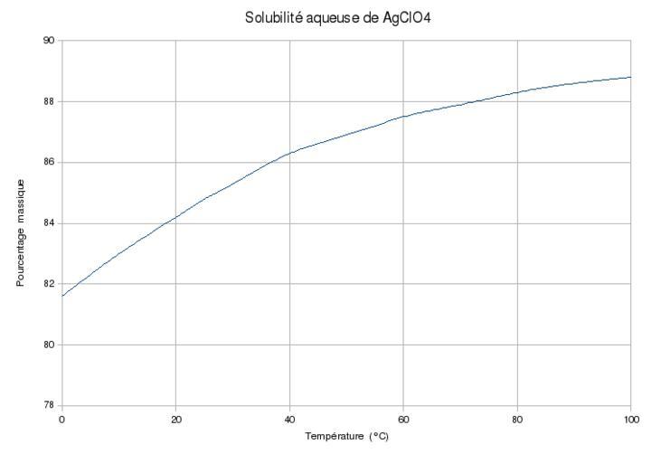 | Keywords: Solubilité aqueuse AgClO4.png fr Solubilité aqueuse du Perchlorate d'argent Créée par mes soins avec OpenOffice org Calc et The Gimp d'après http //www hbcpnetbase com/ Handbook of Chemistry Physics Epop Aqueous solubility curves Silver perchlorate |