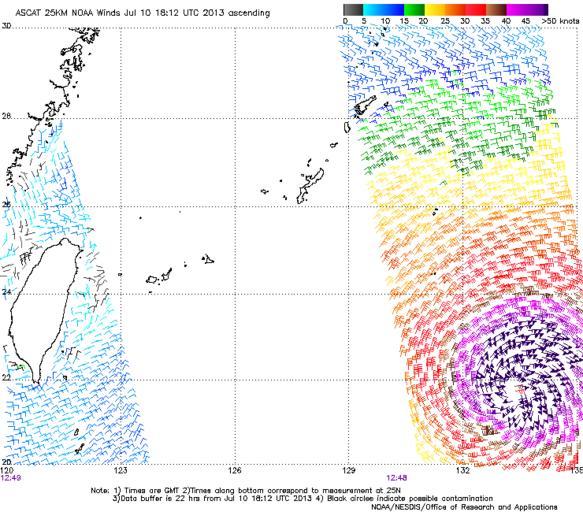 | Keywords: Soulik 2013 July 10 Scatterometer Ascending Pass.png en A snapshot of Typhoon Soulik while at Category 4 intensity captured by NOAA's ASCAT Advanced Scatterometer program 2013-07-10 14 36 33 ASCAT Advanced Scatterometer Data Center on NOAA's NESDIS NOAA Star Program PD-USGov Uploaded with UploadWizard Wind diagrams maps Typhoon Soulik 2013 Scatterometer |