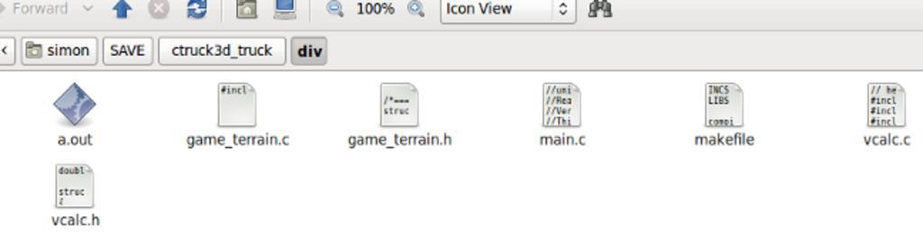 | Keywords: Sources ctruck divided.png en a panoramic view of the source files of CTruck3D_Truck Very simple there are the c and h source files of the C programming language a makefile and the executable successfully created by the GCC compiler A double click on the a out executable causes CTruck3D_Truck to start running offering a free truck-driving experience desktop of CTruck3D_Truck's author ubuntu operating system desktop of CTruck3D_Truck's author ubuntu operating system 2011-12-10 do what you want really here there's not much content Try to make 'readable' OpenSourge programs none Cc-zero CTruck3D English screenshots of GNOME Nautilus |