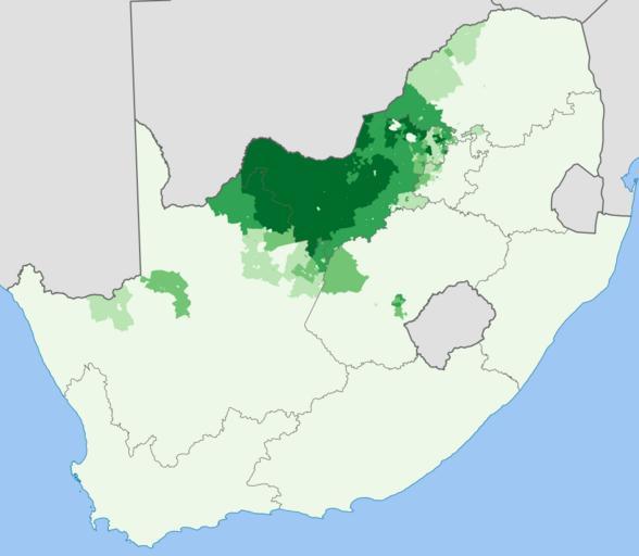 | Keywords: South Africa 2001 Tswana speakers proportion map.svg EDF8E9 0 “20 BAE4B3 20 “40 74C476 40 “60 31A354 60 “80 006D2C 80 “100 Projection is Albers Equal-Area Conic with standard parallels at 25 5° S and 31 5° S and origin at 28 5° S 25 5° E Statistics South Africa's Census 2001 is the source of the basic population data The map results from my own processing of the data Htonl 2010-02-22 Superseded linguistic maps of South Africa Maps with Albers projection The following license applies to the population data on which the map is based http //www statssa gov za/copyrightdisclaimer asp the user acknowledges Stats SA as the source of the basic data wherever they process apply utilise publish or distribute the data and also that they specify that the relevant application and analysis where applicable result from their own processing of the data The following tag applies to the map itself |