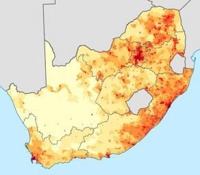 Keywords: South Africa 2011 population density map.svg ffffcc <1 inhabitant/km² ffeda0 1 “3 inhabitants/km² fed976 3 “10 inhabitants/km² feb24c 10 “30 inhabitants/km² fd8d3c 30 “100 inhabitants/km² fc4e2a 100 “300 inhabitants/km² e31a1c 300 “1000 inhabitants/km² bc0026 1000 “3000 inhabitants/km² 800026 >3000 inhabitants/km² Projection is Albers Equal-Area Conic with standard parallels at 25 5° S and 31 5° S and origin at 28 5° S 24 5° E Bevölkerungsdichte SĂĽdafrikas im Jahr 2011 legend ffffcc <1 Einwohner/km² ffeda0 1 “3 Einwohner/km² fed976 3 “10 Einwohner/km² feb24c 10 “30 Einwohner/km² fd8d3c 30 “100 Einwohner/km² fc4e2a 100 “300 Einwohner/km² e31a1c 300 “1000 Einwohner/km² bc0026 1000 “3000 Einwohner/km² 800026 >3000 Einwohner/km² Statistics South Africa's Census 2011 is the source of the basic population data The map results from my own processing of the data For ward boundaries see File South Africa electoral wards 2011 blank svg Htonl 2012-11-14 Demographic maps of South Africa Population density maps of Africa Maps by Htonl Maps with Albers projection The following license applies to the population data on which the map is based http //www statssa gov za/copyrightdisclaimer asp the user acknowledges Stats SA as the source of the basic data wherever they process apply utilise publish or distribute the data and also that they specify that the relevant application and analysis where applicable result from their own processing of the data The following tag applies to the map itself |