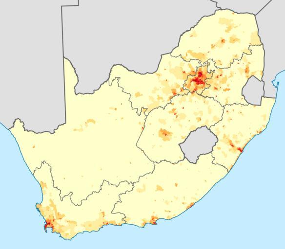 | Keywords: South Africa 2011 White population density map.svg ffffcc <1 person/km² ffeda0 1 “3 people/km² fed976 3 “10 people/km² feb24c 10 “30 people/km² fd8d3c 30 “100 people/km² fc4e2a 100 “300 people/km² e31a1c 300 “1000 people/km² bc0026 1000 “3000 people/km² 800026 >3000 people/km² Projection is Albers Equal-Area Conic with standard parallels at 25 5° S and 31 5° S and origin at 28 5° S 25 5° E Statistics South Africa's Census 2011 is the source of the basic population data The map results from my own processing of the data For ward boundaries see File South Africa electoral wards 2011 blank svg Htonl 2013-04-16 Demographic maps of South Africa White people Maps with Albers projection Maps by Htonl The following license applies to the population data on which the map is based http //www statssa gov za/copyrightdisclaimer asp the user acknowledges Stats SA as the source of the basic data wherever they process apply utilise publish or distribute the data and also that they specify that the relevant application and analysis where applicable result from their own processing of the data The following applies to the map itself |