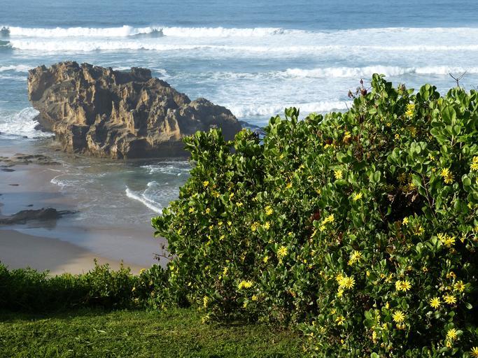 Keywords: south africa garden route nature reserve ocean nature wave spray coast indian ocean sea landscape rock beach sand bush