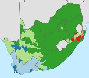 Keywords: South Africa national election 2009 winner by municipality.svg plurality legend 33a02c African National Congress majority b2df8a African National Congress plurality 1f78b4 Democratic Alliance majority a6cee9 Democratic Alliance plurality e31a1c Inkatha Freedom Party majority fb9a99 Inkatha Freedom Party plurality Own work by uploader; based on File South Africa municipalities blank svg with colours applied by a Python script using election result spreadsheets downloaded from http //www elections org za/ Htonl 2009-04-26 File South Africa national election 2009 winner by ward svg 2009 South African general election maps |