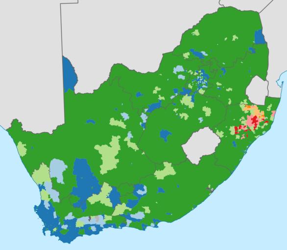 Keywords: South Africa national election 2014 winner by ward.svg 2014 National Assembly election A lighter shade indicates a non-majority plurality legend 33a02c African National Congress majority b2df8a African National Congress plurality 1f78b4 Democratic Alliance majority a6cee9 Democratic Alliance plurality e31a1c Inkatha Freedom Party majority fb9a99 Inkatha Freedom Party plurality ff7f00 National Freedom Party majority fdbf6f National Freedom Party plurality 666666 Other party majority b5b5b5 Other party plurality Election data from the IEC wards from File South Africa electoral wards 2011 blank svg Htonl 2014-05-13 2014 South African general election maps Maps by Htonl Cc-zero |