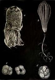 | Keywords: South African Geology - Schwarz - 1912 Fig 8.png Holtenia carpenteri Wyville Thomson a siliceous sponge the spicules of which go to form the flint nodules in chalk and the bands of chert in dolomite b Pentacrinus wyville-thomsoni Jeffreys a crinoid that yields calcium carbonate to the sediments c Globiyerina bulloides d'Orbigny highly magnified The dead shells are shown as they fall to the bottom of the sea d Coccosphere made of coccoliths very highly magnified c and d are free-swimming organisms that yield the greater amount of calcareous matter to the deep sea oozes which consolidate as chalk From Professor Wyville Thomson's Depths of the Sea Macmillan Co Page 49 1912 File South African Geology - Schwarz - 1912 djvu Schwarz Ernest Hubert Lewis 1873-1928 other versions PD-old-70-1923 South African geology book |