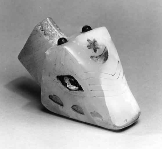 | Keywords: South Arabian - Mace Head - Walters 2114 - Three Quarter.jpg This mace terminates in a young bull's head The ornaments on the forehead--a star and crescent moon--the eyes and the decorative semicircles on the jaws were once inlaid; remnants of bitumen and shell inlay remain in the eye The size and ornamentation of the mace indicates that it was used for ceremonial purposes in a palace or temple rather than as a weapon century 1 BC - century 1 AD calcite-alabaster bitumen shell black stone cm 8 9 14 accession number 21 14 37545 Henry Walters Baltimore date and mode of acquisition unknown Walters Art Museum Henry Walters Acquired by Henry Walters Faces of Ancient Arabia The Giraud and Carolyn Foster Collection of South Arabian Art The Walters Art Museum Baltimore 2008 place of origin Arabian Peninsula Walters Art Museum license South Arabian art in the Walters Art Museum Art of Saudi Arabia Media contributed by the Walters Art Museum needs category review |