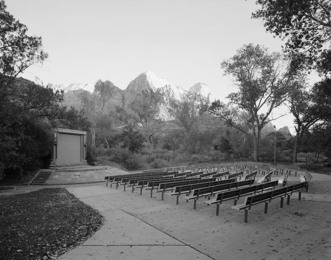 Keywords: South Campground Amphitheater.jpg 37 12 12 N 112 58 55 W Side view of the w South Campground Amphitheater in Zion National Park near Springdale Utah Springdale in Washington County Utah Washington County Utah United States Built in 1934 the amphitheater is listed on the National Register of Historic Places Library of Congress Prints and Photograph Division Historic American Buildings Survey HABS http //hdl loc gov/loc pnp/hhh ut0237 UTAH 27-SPDA V 7B-1 1984-09 Clayton B Fraser UTAH 27-SPDA V 7B-1 LOC-image hhh ut0237 Built in Utah in 1934 Amphitheatres in the United States Black and white photographs of parks Clayton B Fraser Historic American Buildings Survey of Utah Open air theaters Park benches in the United States Public seating National Register of Historic Places in Washington County Utah National Register of Historic Places in Zion National Park Other people's pictures by User Nyttend |